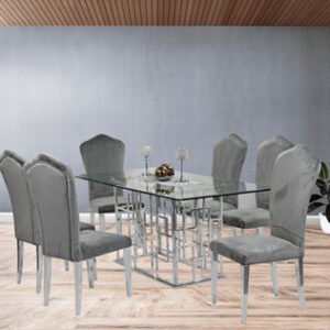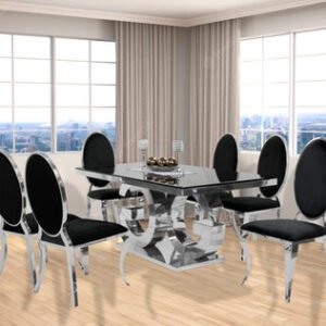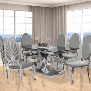 Sword Round Silver Dining Table with 4 Bombay Grey Silver Chairs Set