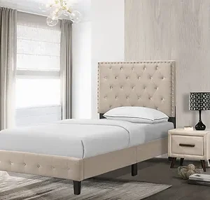 (WASHINGTON BEIGE)- FABRIC BED FRAME- WITH SLATS