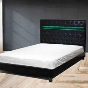 Black Faux Leather Button Tufted Color Changing Led Queen Size Platform Bed (No Box Spring Required) in Ontario