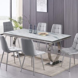 Sword Rectangular Dining Table with 6 Bombay Grey Chairs Set