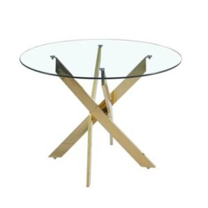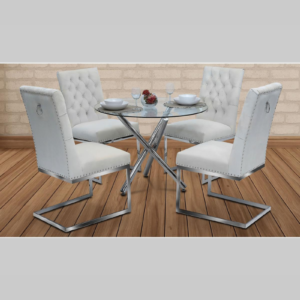 Round Glasses Dinning Table With Chrome 5Pc Set