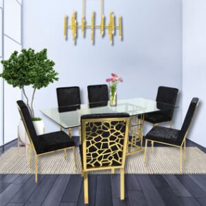 Soleil Dining Table + 6 Black Riley Chairs Set