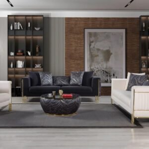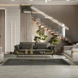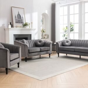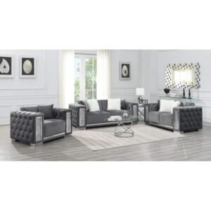326 (SABRINA)GREY/GOLD 3 PCS SOFA SET