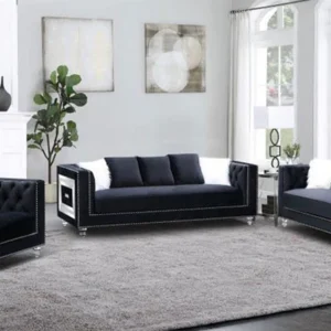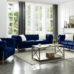 EI_3425 Sofa Set with Posh Velvet Fabric – 3 Piece – Blue