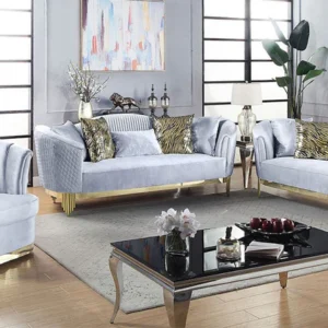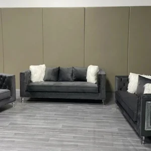 EI_3425 – Grey Sofa Set with Posh Velvet Fabric – 3 Piece