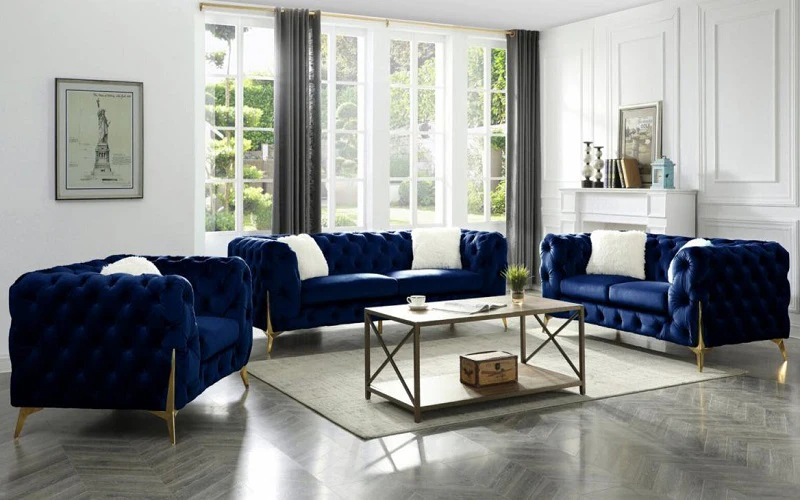 EI_3425 Sofa Set with Posh Velvet Fabric - 3 Piece - Blue