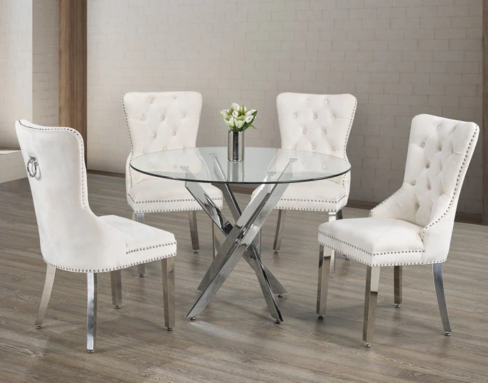 Round Glasses Dinning Table With Chrome 5Pc Set