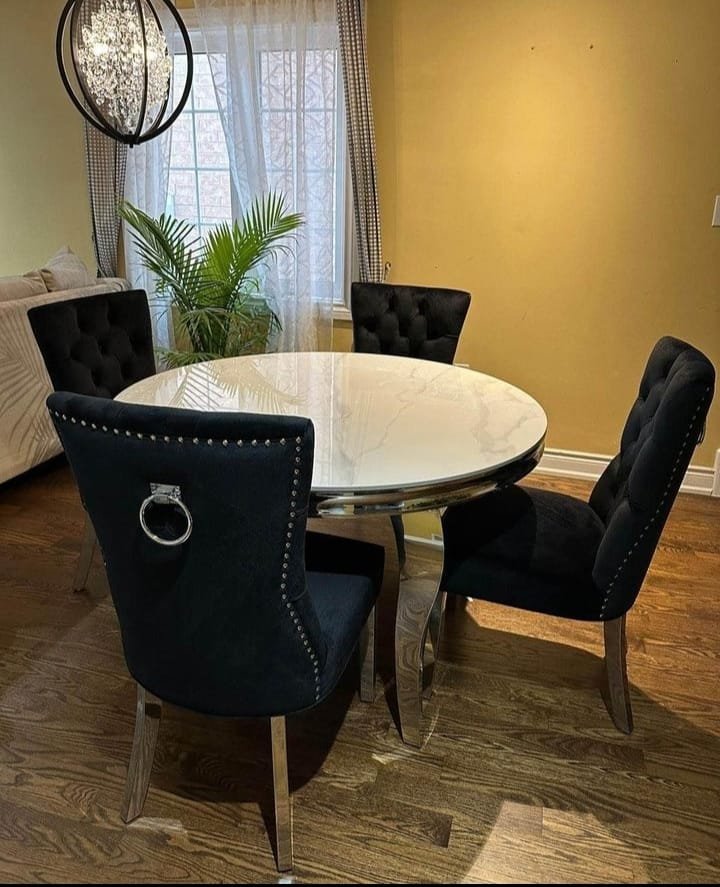 Be the first to review “Round Marble With Silver Dining Table Set”