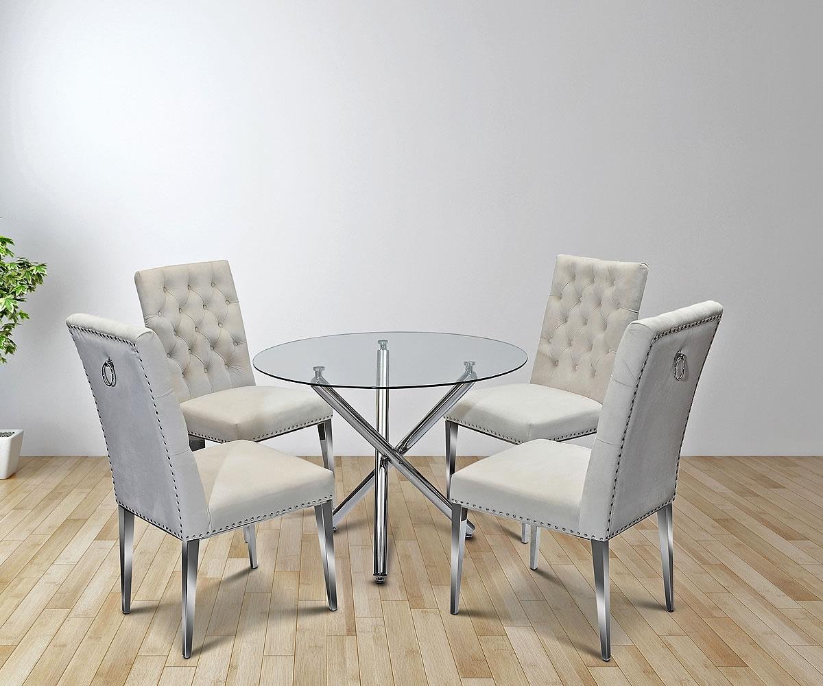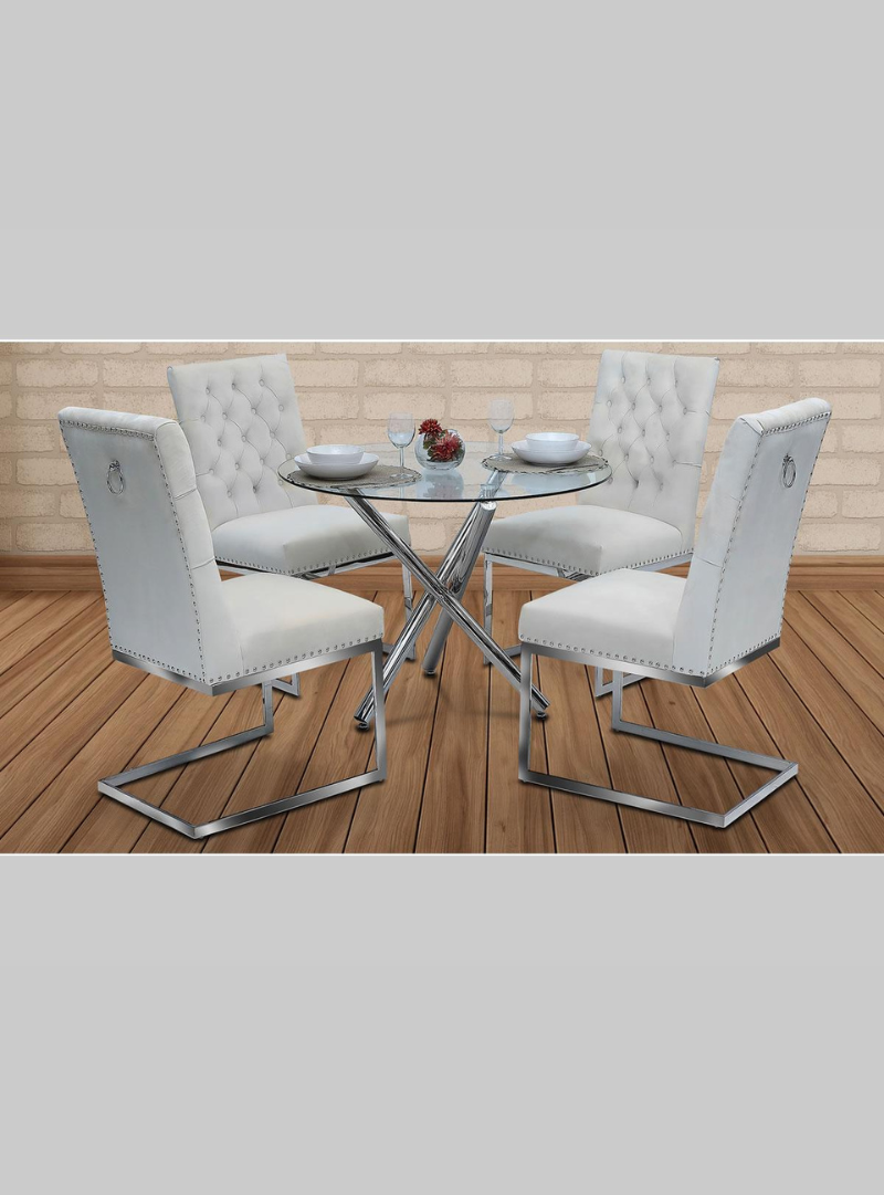 The Weston Dining Table combines modern elegance with durability. It features a round clear tempered glass top supported by a solid stainless steel chrome frame. The sleek design and high-quality materials make it an ideal centerpiece for contemporary dining spaces. It pairs well with various modern chairs to complete your dining area.
